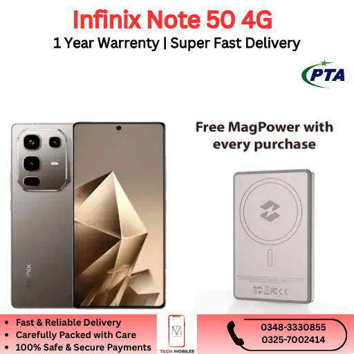 Searching for brand-new box pack smartphones in Pakistan? You’re at the perfect place! At TechMobiles, you can buy the Infinix Note 50 4G at the best price with complete peace of mind. We offer 100% genuine, sealed, and untouched box pack mobiles with smooth and reliable nationwide delivery.