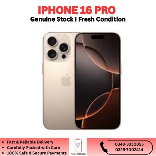 Looking to buy the iPhone 16 Pro in Pakistan 2026? TechMobiles.pk offers premium imported and PTA-approved models at competitive prices. Each device is carefully tested, verified, and delivered with a parcel-opening video plus a 7-day checking warranty for your satisfaction.