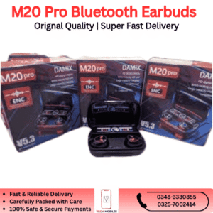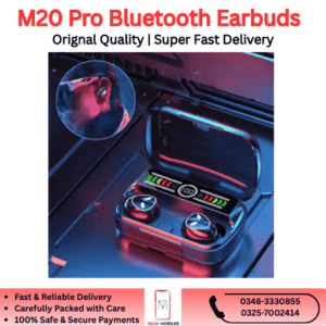 The M20 Pro Bluetooth Earbuds are available in Pakistan starting from PKR 3,900, offering premium sound, modern features, and a compact design at an affordable price.