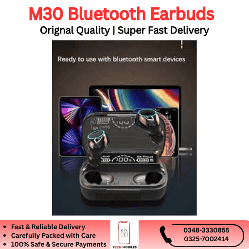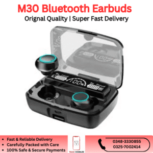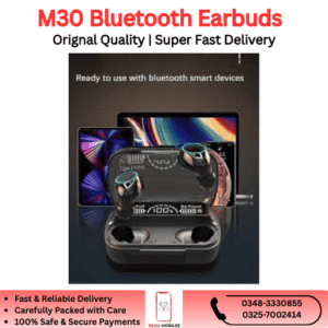 The M30 Bluetooth Earbuds are available in Pakistan starting from PKR 2,300, delivering premium-quality wireless audio at a budget-friendly price.