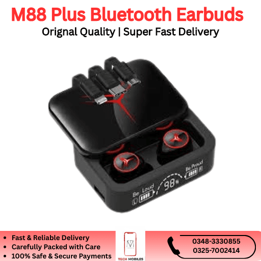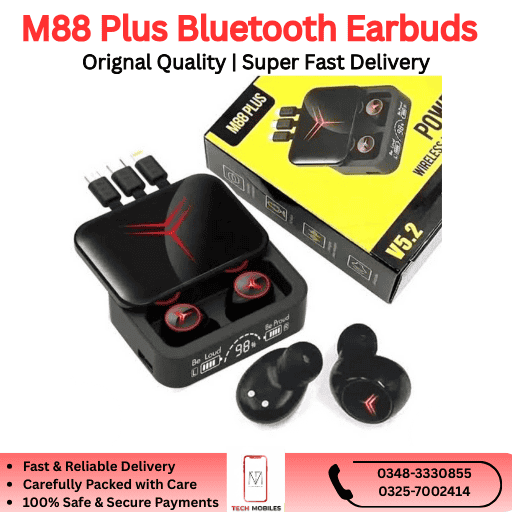 The M88 Plus Bluetooth Earbuds are available in Pakistan starting from PKR 2,900, offering premium-quality wireless earbuds at a budget-friendly price.