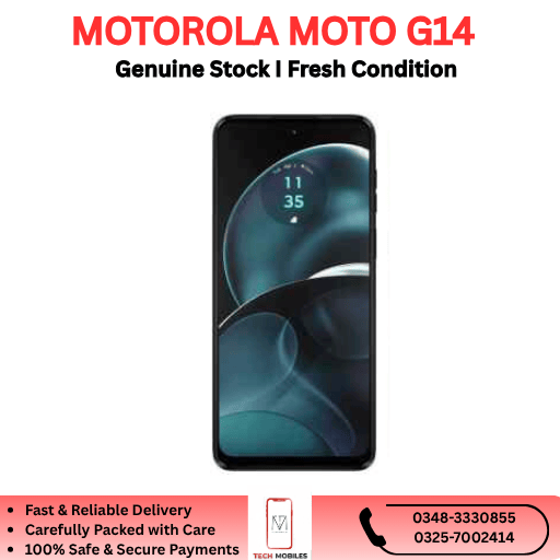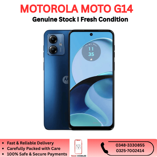 Looking to buy the Motorola Moto G14 in Pakistan? Trusted retailers and import-suppliers offer PTA-approved or clean imported units. Each device is fully tested, a parcel-opening video is recorded at delivery, and a 7-day checking warranty is included — ensuring a safe and reliable purchase.