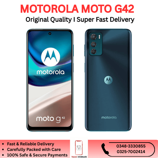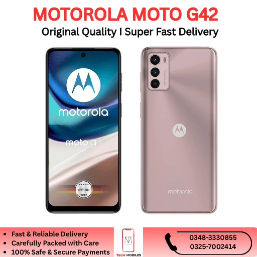 Looking to buy the Motorola Moto G42 in Pakistan? Trusted retailers and import-suppliers offer PTA-approved or clean imported units. Each device is fully tested, a parcel-opening video is recorded at delivery, and a 7-day checking warranty is provided — ensuring a safe and trustworthy purchase.