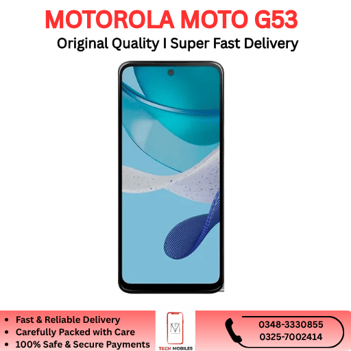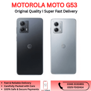 Looking to buy the Motorola Moto G53 in Pakistan? Trusted retailers and import-suppliers offer PTA-approved or clean imported units. Each device is fully tested, a parcel-opening video is recorded at delivery, and a 7-day checking warranty is included — making your purchase safe and reliable.