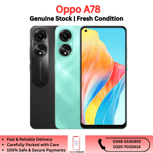Looking to buy the Oppo A78 in Pakistan? Trusted import sellers offer clean, verified, and PTA-approved units. Each device is fully checked for display quality, battery health, cameras, and overall performance. You also get a 7-day checking warranty along with a parcel-opening video for complete peace of mind.