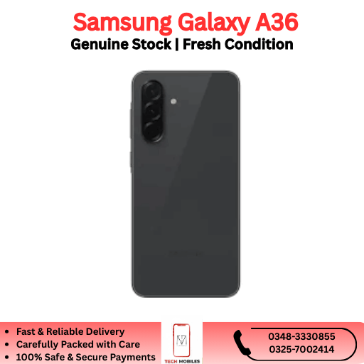 The Samsung Galaxy A36 is a powerful mid-range smartphone featuring a 6.6-inch Super AMOLED 120Hz display, a fast and efficient processor, and a crystal-clear triple-camera setup. Whether it’s gaming, photography, social media, or everyday use — the A36 offers excellent performance with premium Samsung build quality.