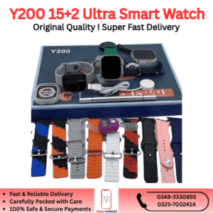 The Y200 Ultra Smart Watch is one of Pakistan’s top-selling budget smartwatches, known for its premium design, smooth performance, and advanced features at an affordable price. With its 1.9-inch HD display, sharp touch response, and Bluetooth Calling, the Y200 Ultra keeps you connected wherever you go.