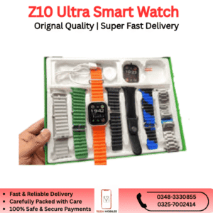Fully compatible with Android and iOS devices, the Z10 Ultra supports notifications, calls, messages, fitness tracking, custom watch faces, and multiple smart features — offering excellent value for money in Pakistan.